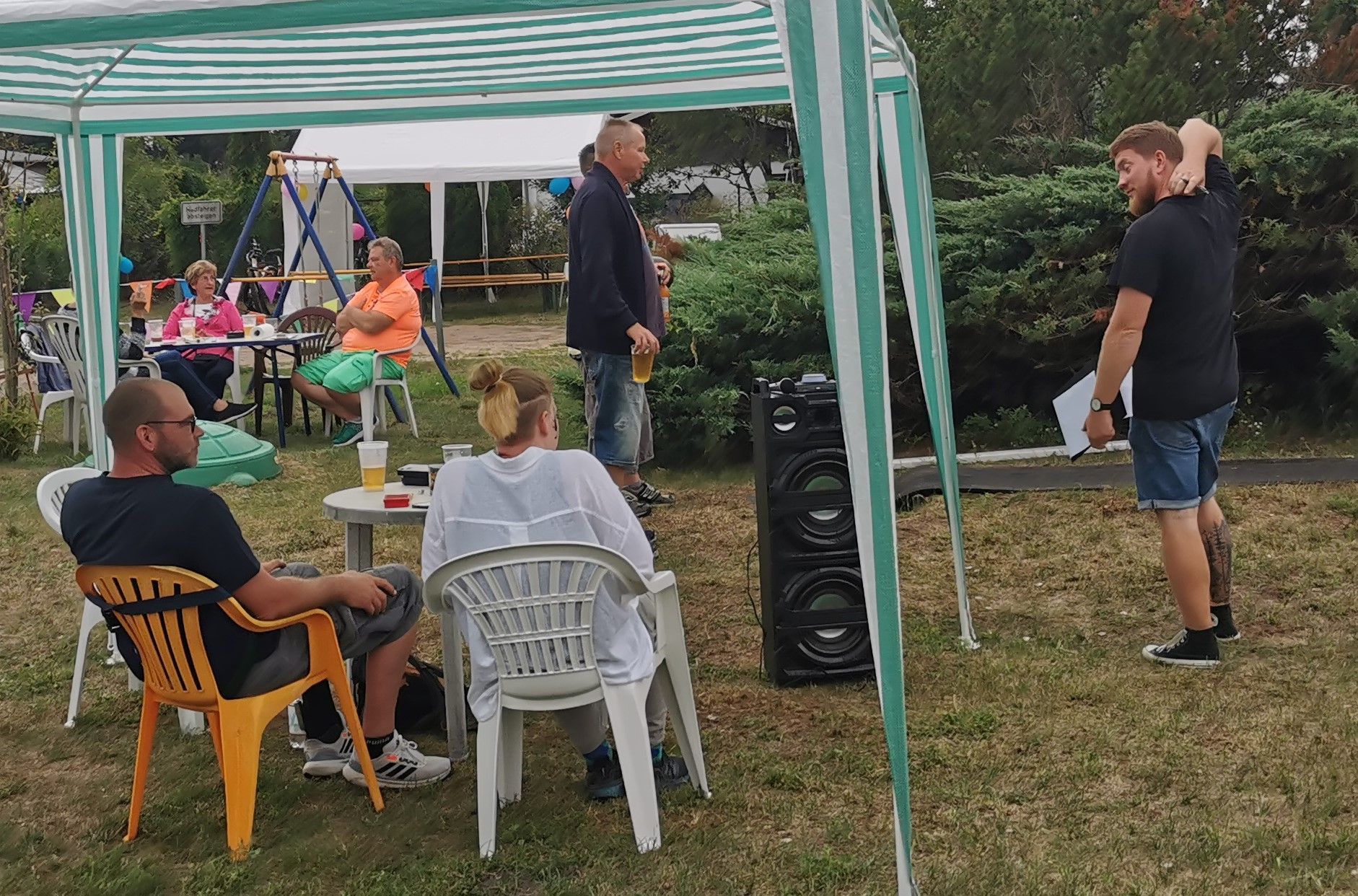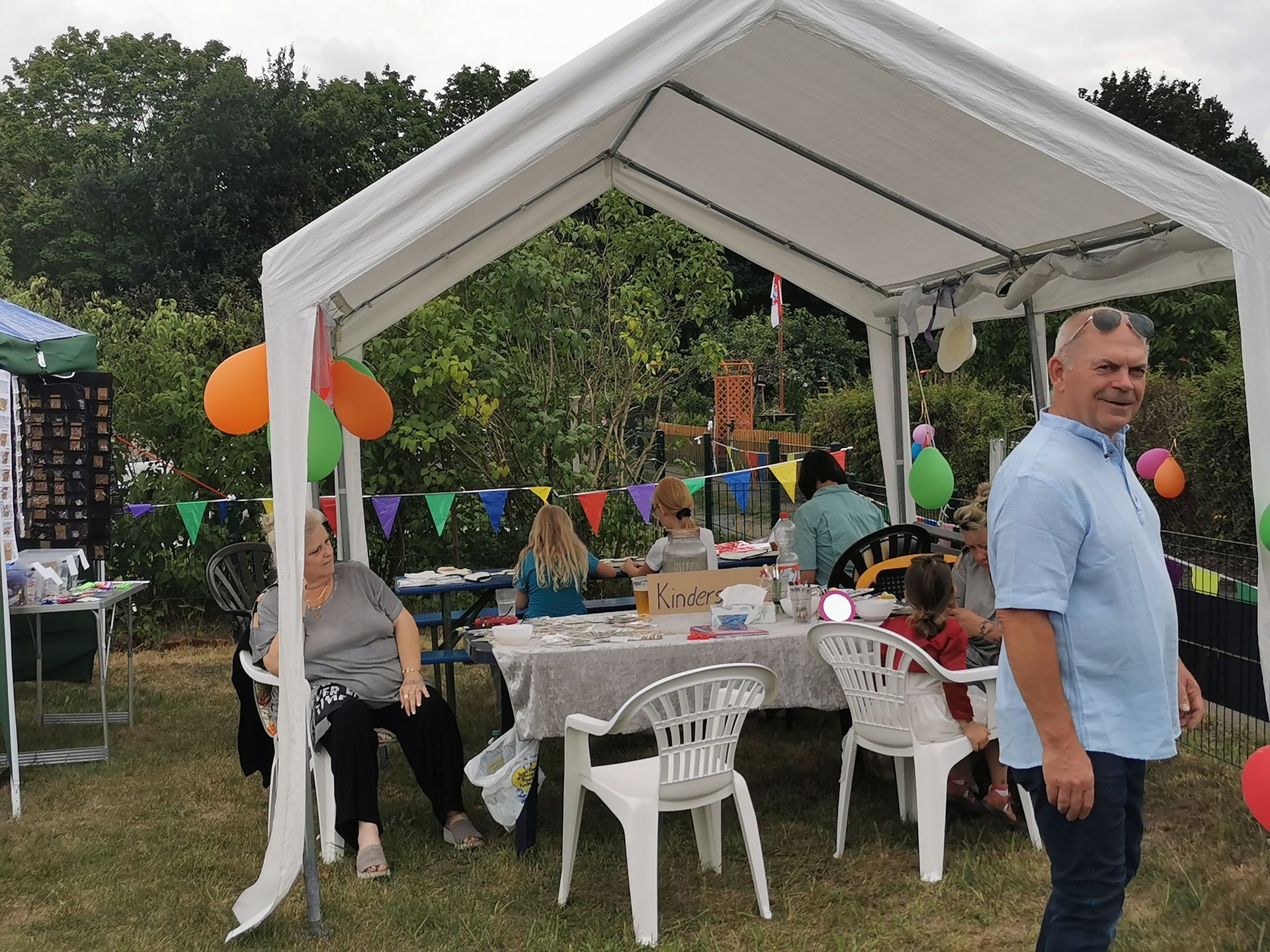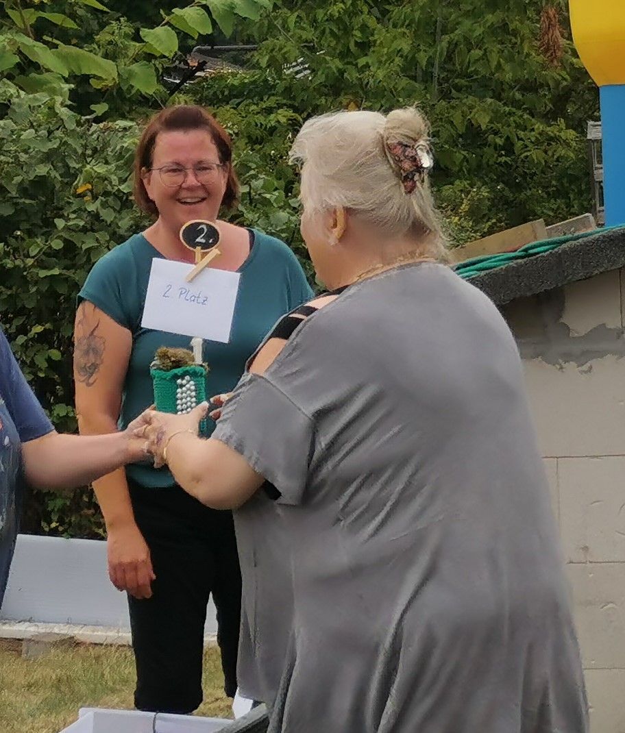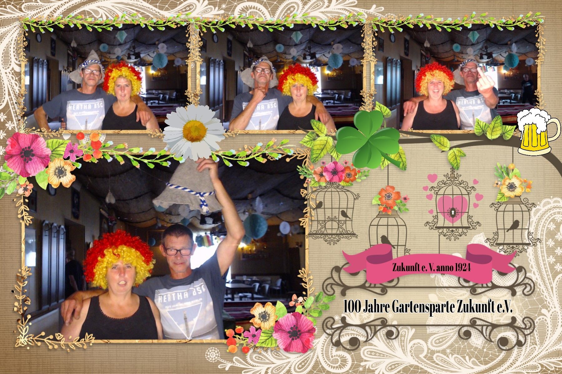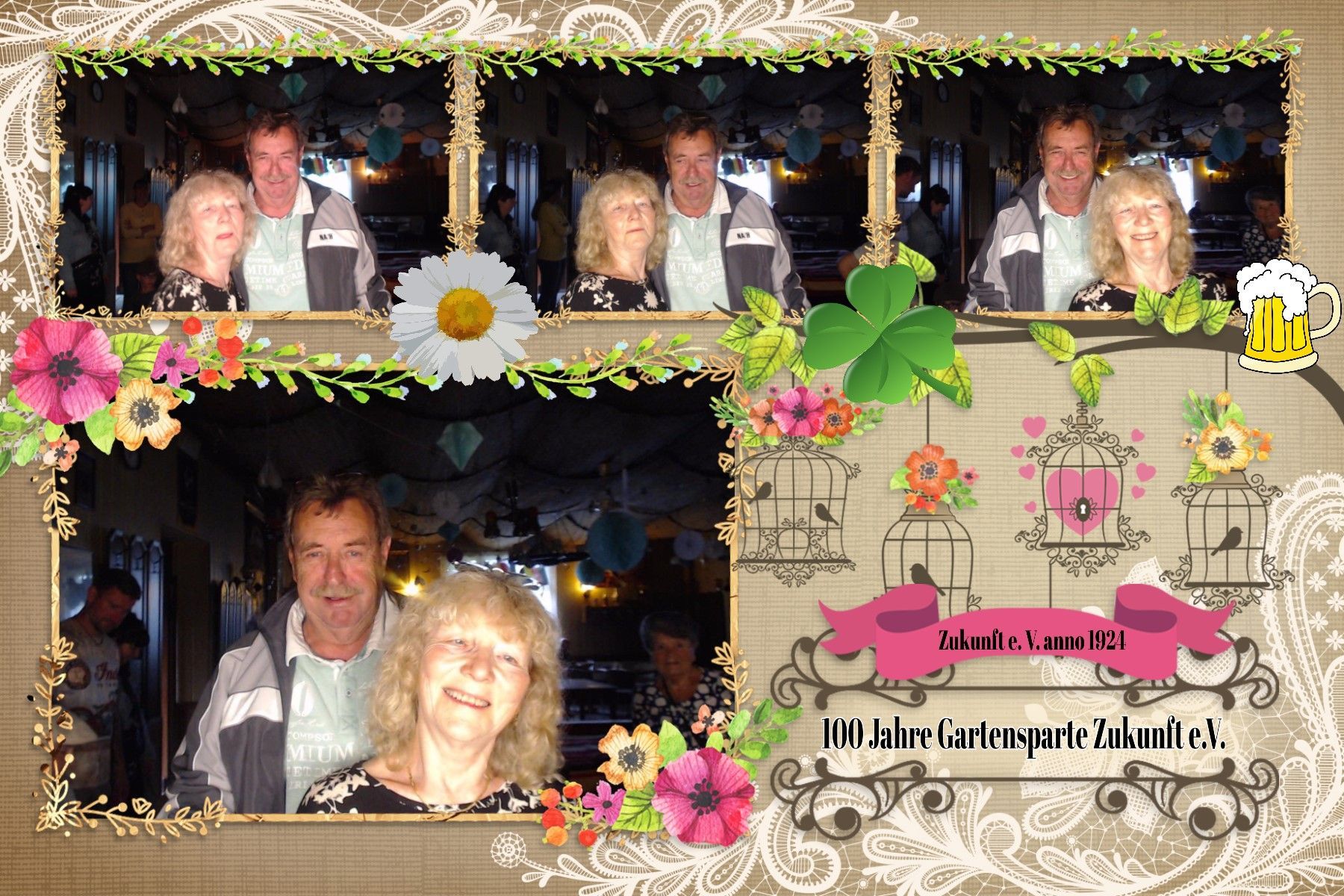 14 Uhr fing die Feier an, langsam füllten sich die Reihen. Die Musikalische Darbietung von Peter Hengge war ein Ohrenschmaus. Hier wurden alle Gäste mehr als abgeholt. Zusätzlich war eine Fotobox vorhanden, bei welcher sich alle Gäste für einen schmalen Taler allein oder auch in Gruppen, in Szene setzen konnten. Das Wetter war zwar bewölkt und schwül, aber bis zum späten Nachmittag gab es keinen Regen. So konnte auch die Softeismaschine ihre Dienste tun. Auch die Brandenburger Kleiderursel war anwesend und hatte tolle Waren im Gepäck, welche im Zusammenspiel mit einem kleinen Flohmarkt viele Leute ansprachen. Natürlich gab es auch die allbekannten Highlights, wie ein riesiges Kuchen Büfett, mit einem -100 Jahre Gartensparte Zukunft- Kuchen, eine Hüpfeburg und Kinderschminken, Kegeln mit Preisverleihung und Forellenwürfeln waren ebenfalls, zwar wie im Vorjahr, aber doch etwas üppiger, vorhanden. Beim Würfeln gab es dieses Mal auch noch geräucherten Käse, welcher ein wahrer Gaumenschmaus gewesen ist. Selbstverständlich gab es auch wieder leckeres Essen, wie Soljanka und Bratwurst, welche Krampe und Team mit seinen Kochkünsten zauberte. Und wie in jedem Jahr hat der Kneiper vom Appelboom, Uwe, alles getan, damit niemand auf dem Trockenen steht. Es war also ein wirklich gelungenes Fest, alle anwesenden hatten Spaß und kamen auf Ihre Kosten. In diesem Sinne auch noch einmal ein großes Dankeschön an die Organisatoren des Festkomitees und allen fleißigen Helfern.