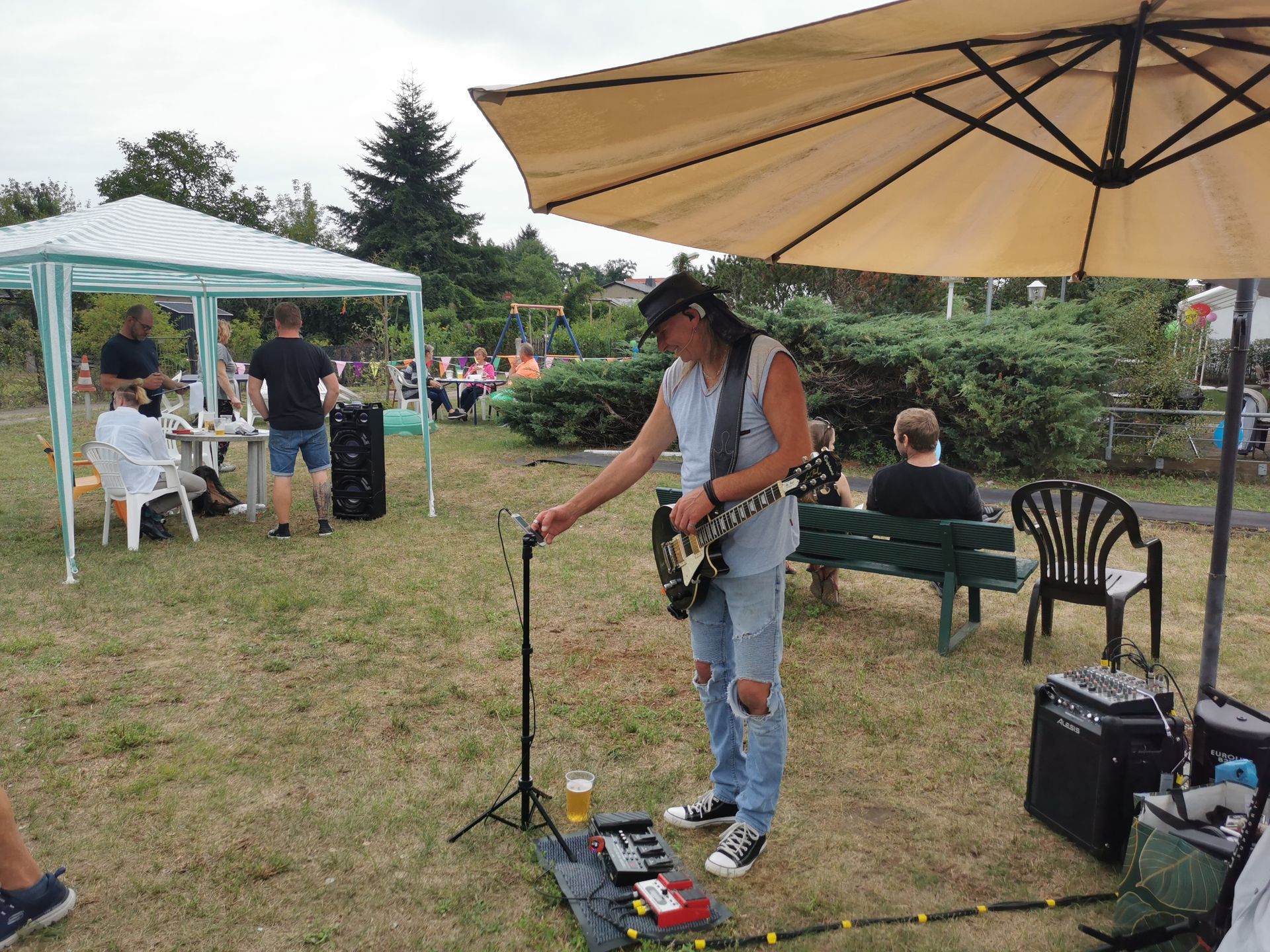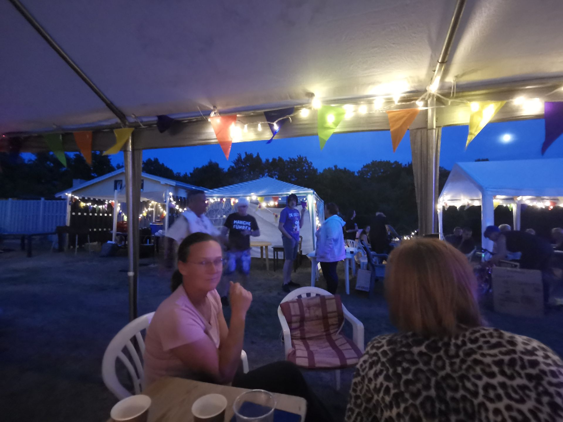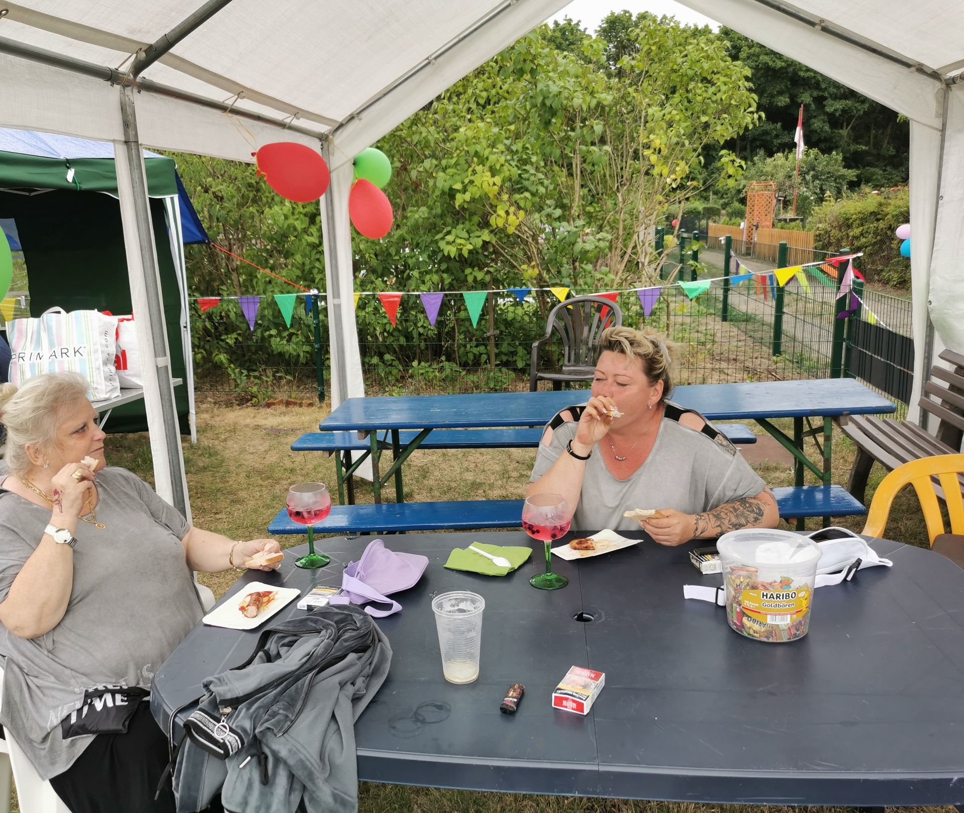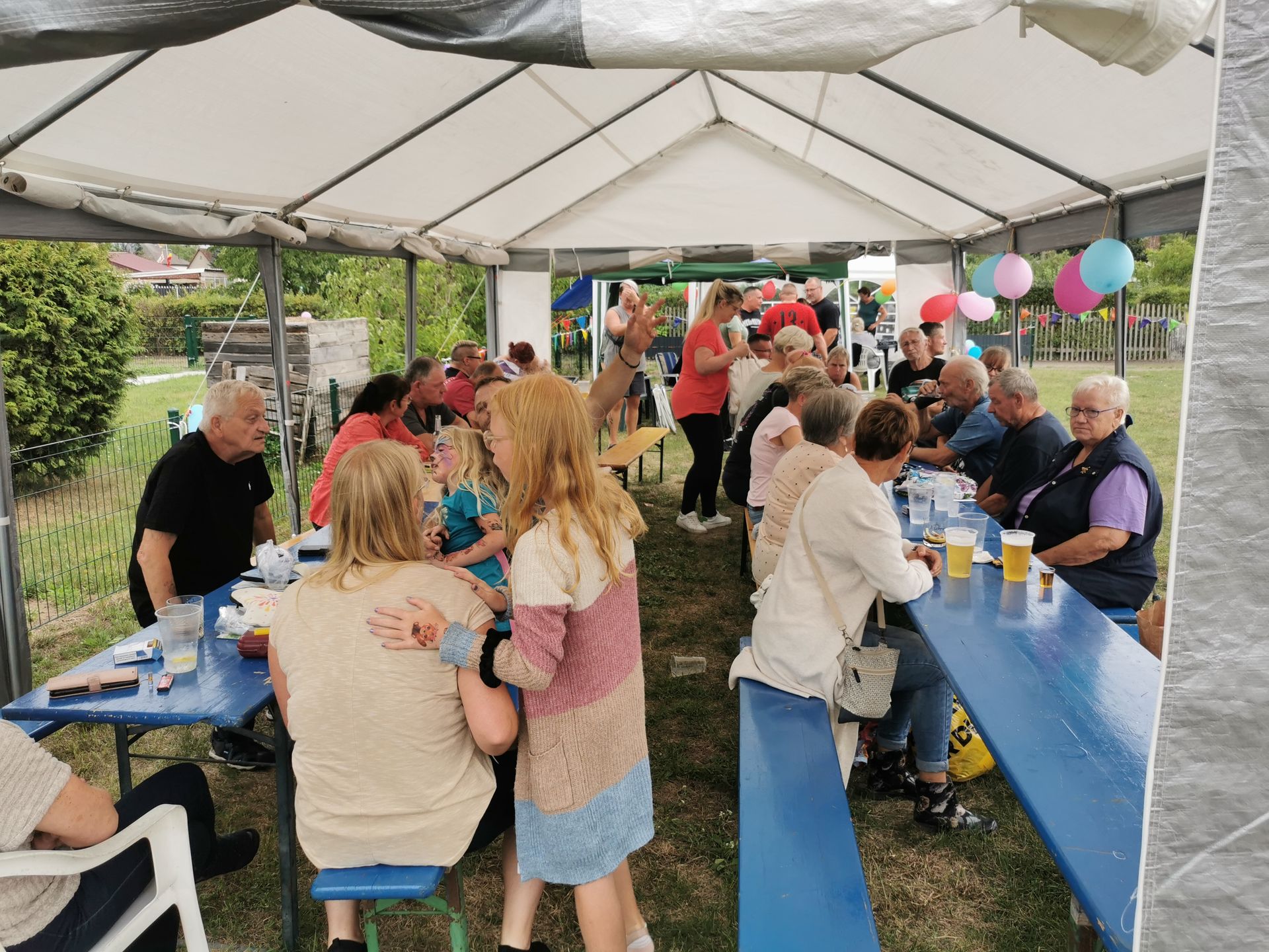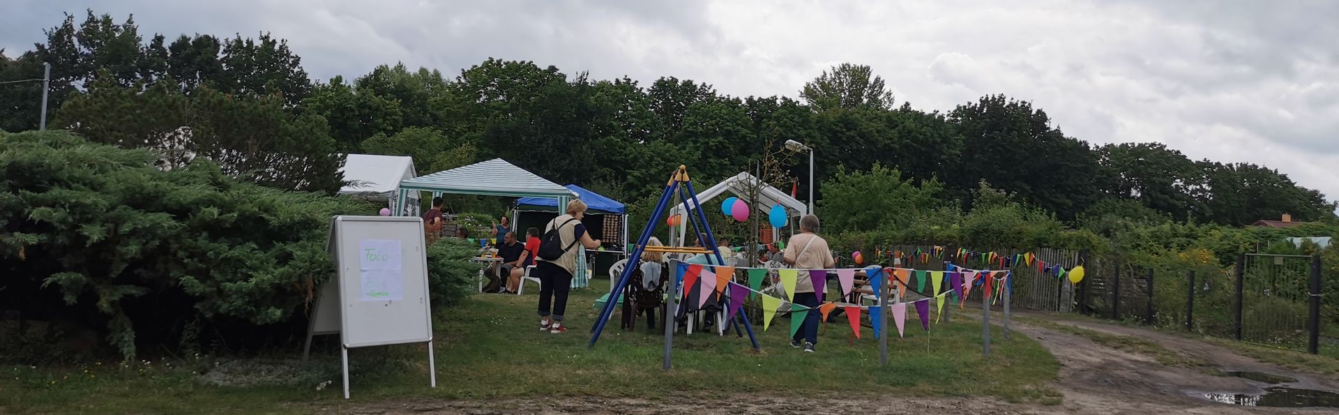 14 Uhr fing die Feier an, langsam füllten sich die Reihen. Die Musikalische Darbietung von Peter Hengge war ein Ohrenschmaus. Hier wurden alle Gäste mehr als abgeholt. Zusätzlich war eine Fotobox vorhanden, bei welcher sich alle Gäste für einen schmalen Taler allein oder auch in Gruppen, in Szene setzen konnten. Das Wetter war zwar bewölkt und schwül, aber bis zum späten Nachmittag gab es keinen Regen. So konnte auch die Softeismaschine ihre Dienste tun. Auch die Brandenburger Kleiderursel war anwesend und hatte tolle Waren im Gepäck, welche im Zusammenspiel mit einem kleinen Flohmarkt viele Leute ansprachen. Natürlich gab es auch die allbekannten Highlights, wie ein riesiges Kuchen Büfett, mit einem -100 Jahre Gartensparte Zukunft- Kuchen, eine Hüpfeburg und Kinderschminken, Kegeln mit Preisverleihung und Forellenwürfeln waren ebenfalls, zwar wie im Vorjahr, aber doch etwas üppiger, vorhanden. Beim Würfeln gab es dieses Mal auch noch geräucherten Käse, welcher ein wahrer Gaumenschmaus gewesen ist. Selbstverständlich gab es auch wieder leckeres Essen, wie Soljanka und Bratwurst, welche Krampe und Team mit seinen Kochkünsten zauberte. Und wie in jedem Jahr hat der Kneiper vom Appelboom, Uwe, alles getan, damit niemand auf dem Trockenen steht. Es war also ein wirklich gelungenes Fest, alle anwesenden hatten Spaß und kamen auf Ihre Kosten. In diesem Sinne auch noch einmal ein großes Dankeschön an die Organisatoren des Festkomitees und allen fleißigen Helfern.