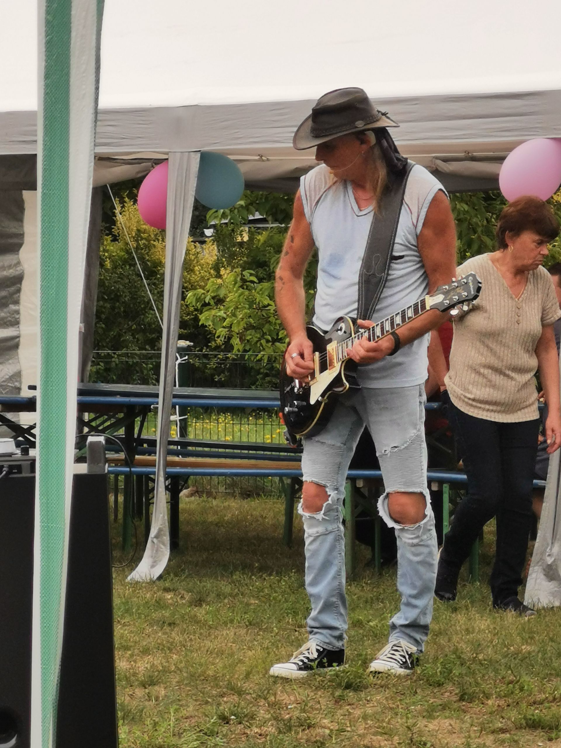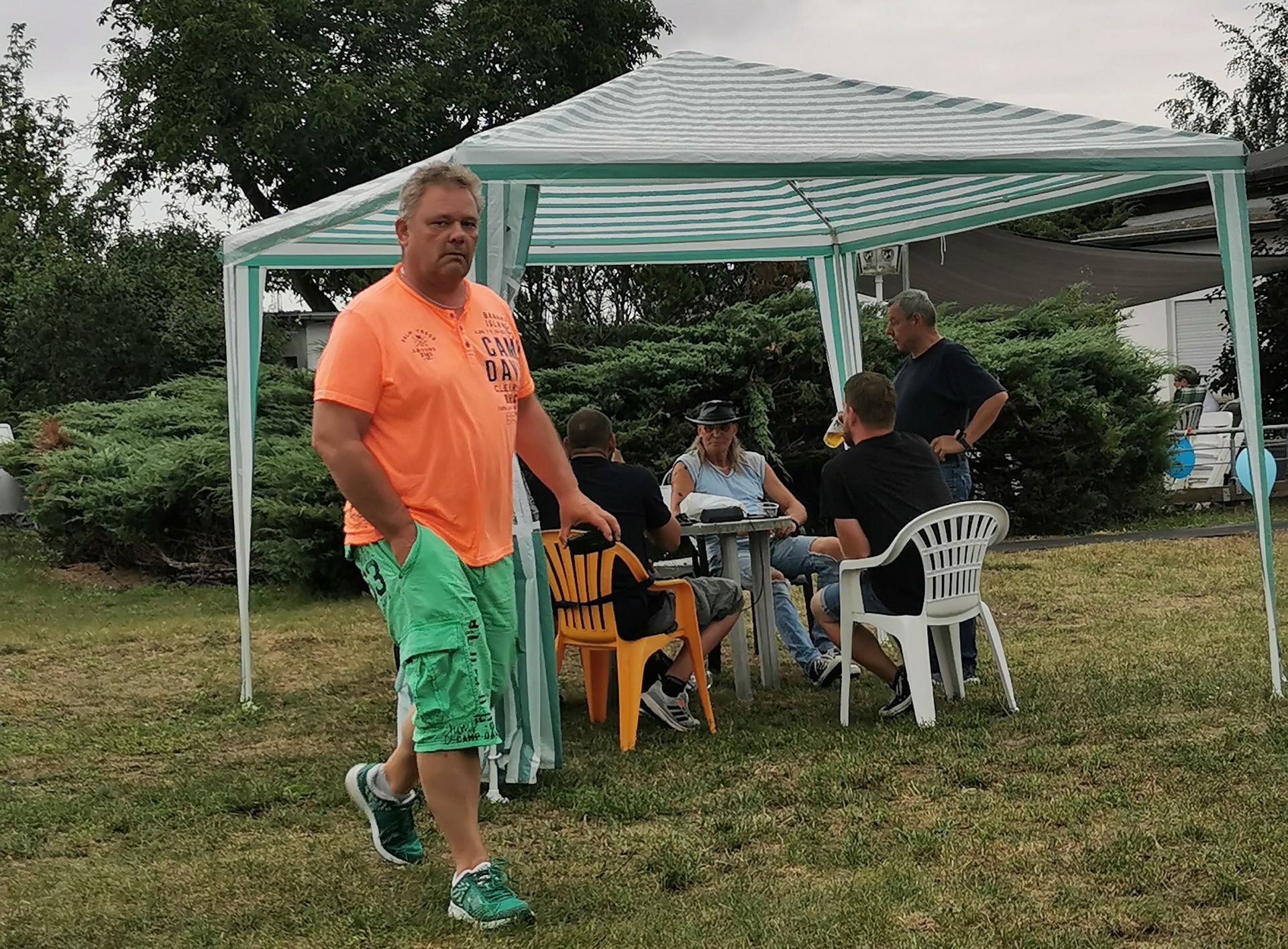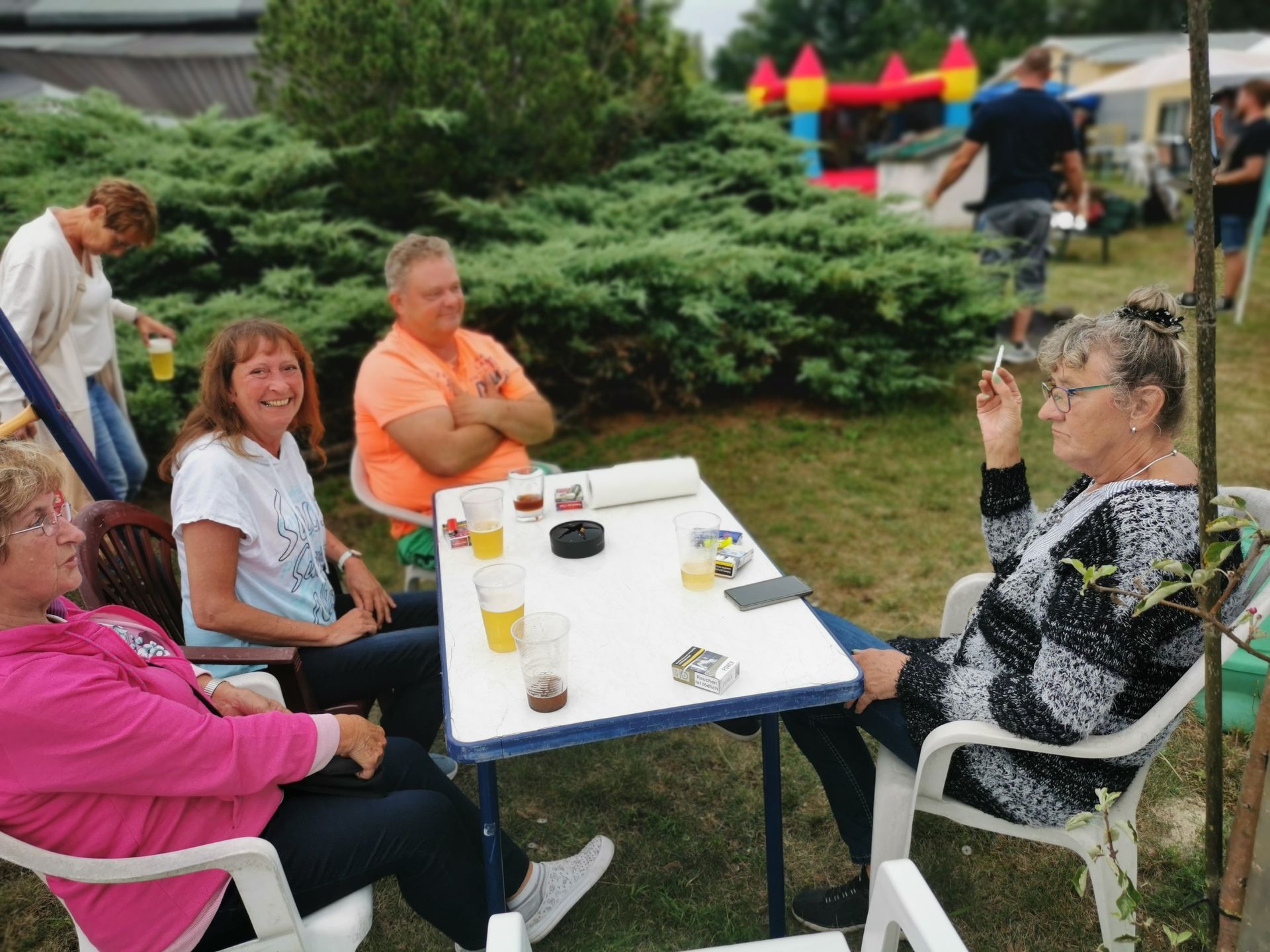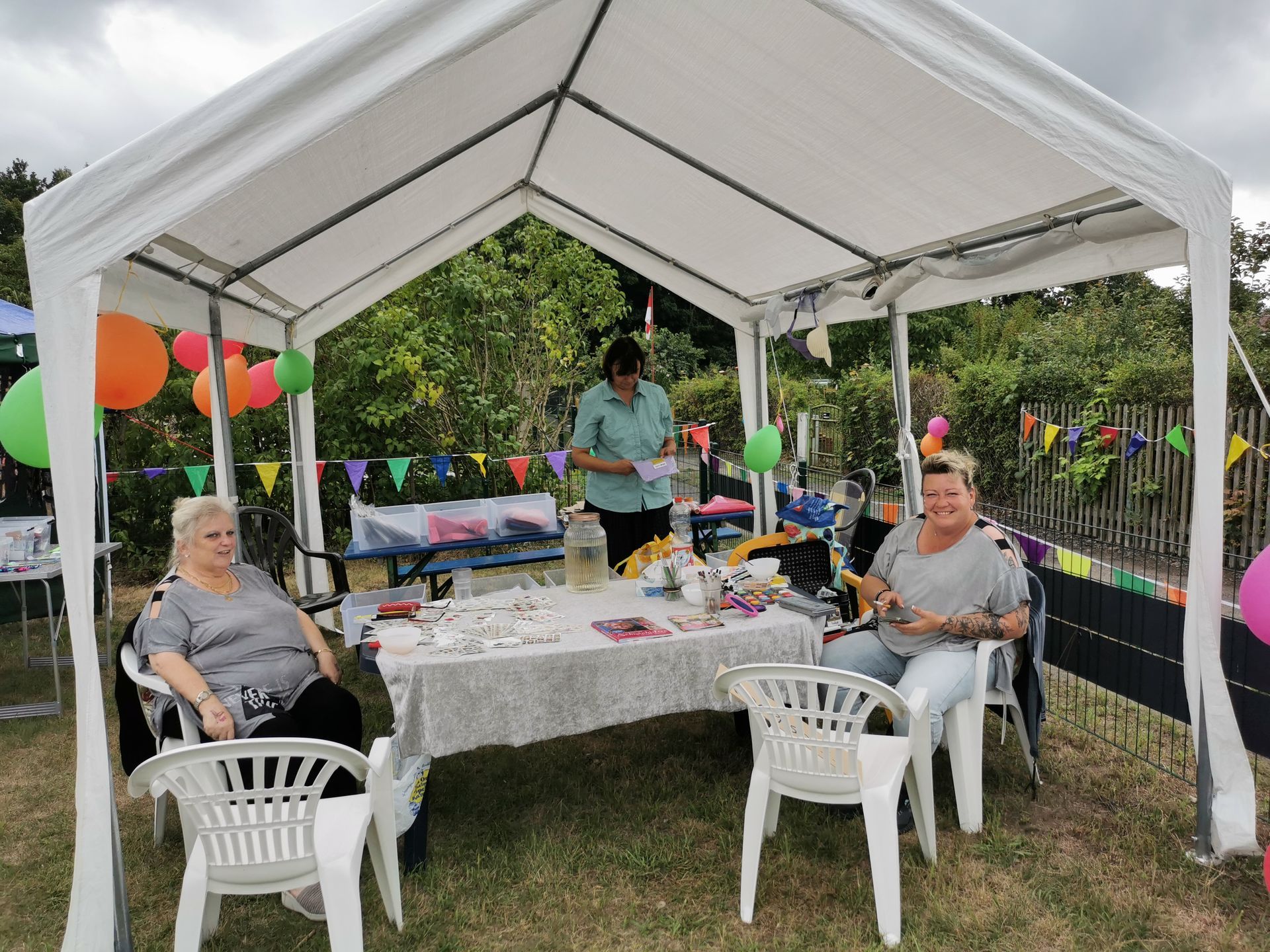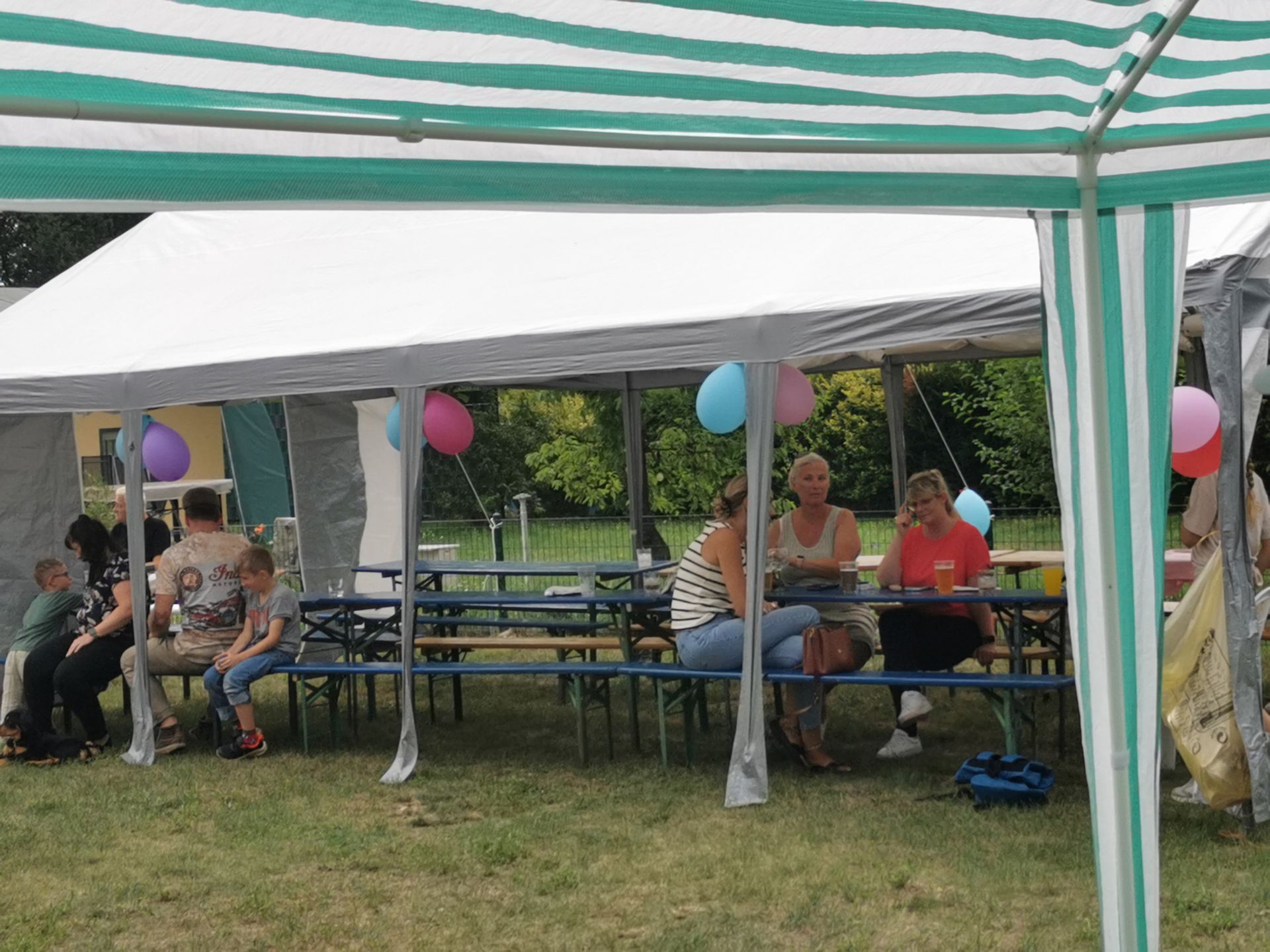 14 Uhr fing die Feier an, langsam füllten sich die Reihen. Die Musikalische Darbietung von Peter Hengge war ein Ohrenschmaus. Hier wurden alle Gäste mehr als abgeholt. Zusätzlich war eine Fotobox vorhanden, bei welcher sich alle Gäste für einen schmalen Taler allein oder auch in Gruppen, in Szene setzen konnten. Das Wetter war zwar bewölkt und schwül, aber bis zum späten Nachmittag gab es keinen Regen. So konnte auch die Softeismaschine ihre Dienste tun. Auch die Brandenburger Kleiderursel war anwesend und hatte tolle Waren im Gepäck, welche im Zusammenspiel mit einem kleinen Flohmarkt viele Leute ansprachen. Natürlich gab es auch die allbekannten Highlights, wie ein riesiges Kuchen Büfett, mit einem -100 Jahre Gartensparte Zukunft- Kuchen, eine Hüpfeburg und Kinderschminken, Kegeln mit Preisverleihung und Forellenwürfeln waren ebenfalls, zwar wie im Vorjahr, aber doch etwas üppiger, vorhanden. Beim Würfeln gab es dieses Mal auch noch geräucherten Käse, welcher ein wahrer Gaumenschmaus gewesen ist. Selbstverständlich gab es auch wieder leckeres Essen, wie Soljanka und Bratwurst, welche Krampe und Team mit seinen Kochkünsten zauberte. Und wie in jedem Jahr hat der Kneiper vom Appelboom, Uwe, alles getan, damit niemand auf dem Trockenen steht. Es war also ein wirklich gelungenes Fest, alle anwesenden hatten Spaß und kamen auf Ihre Kosten. In diesem Sinne auch noch einmal ein großes Dankeschön an die Organisatoren des Festkomitees und allen fleißigen Helfern.