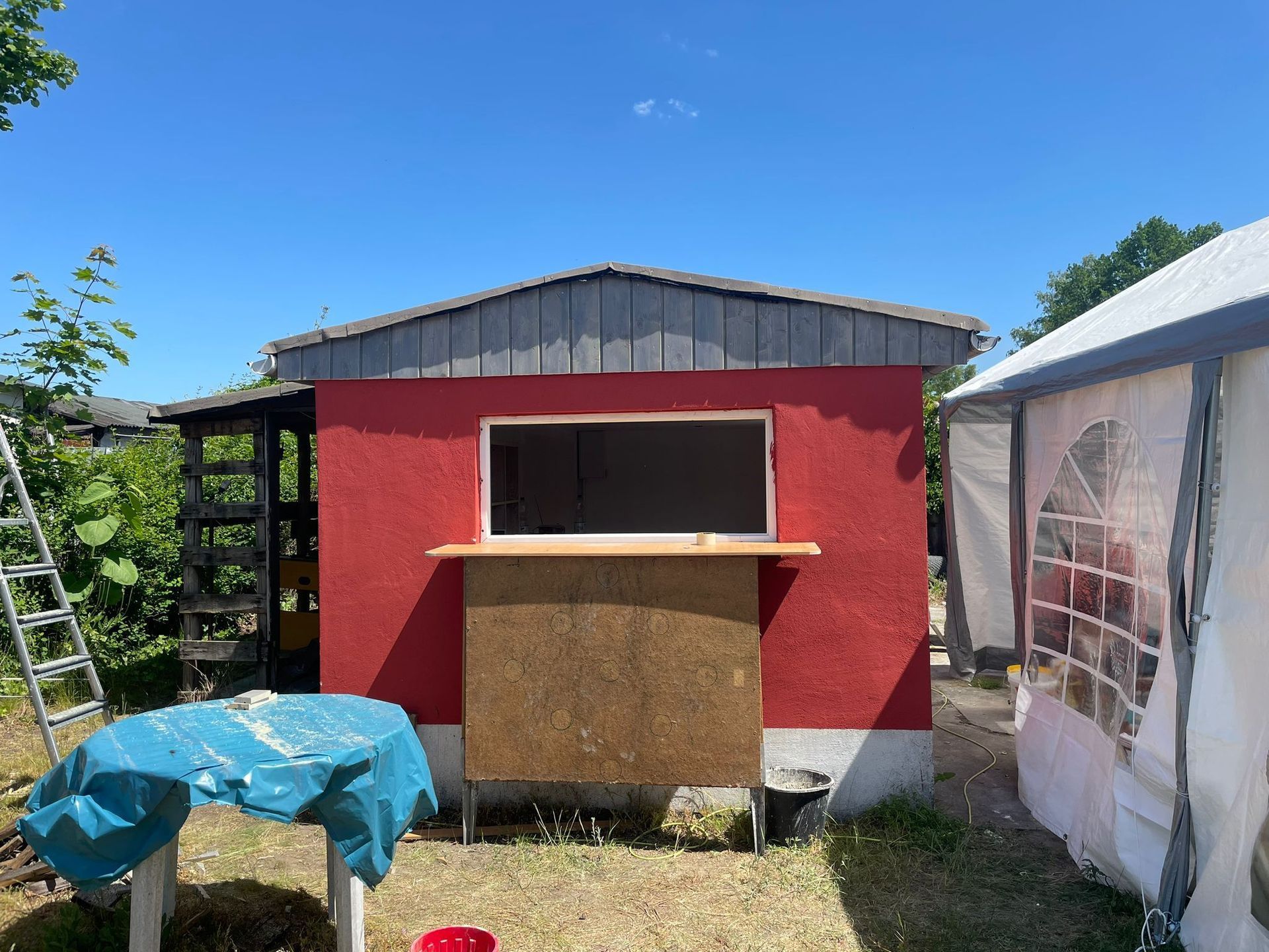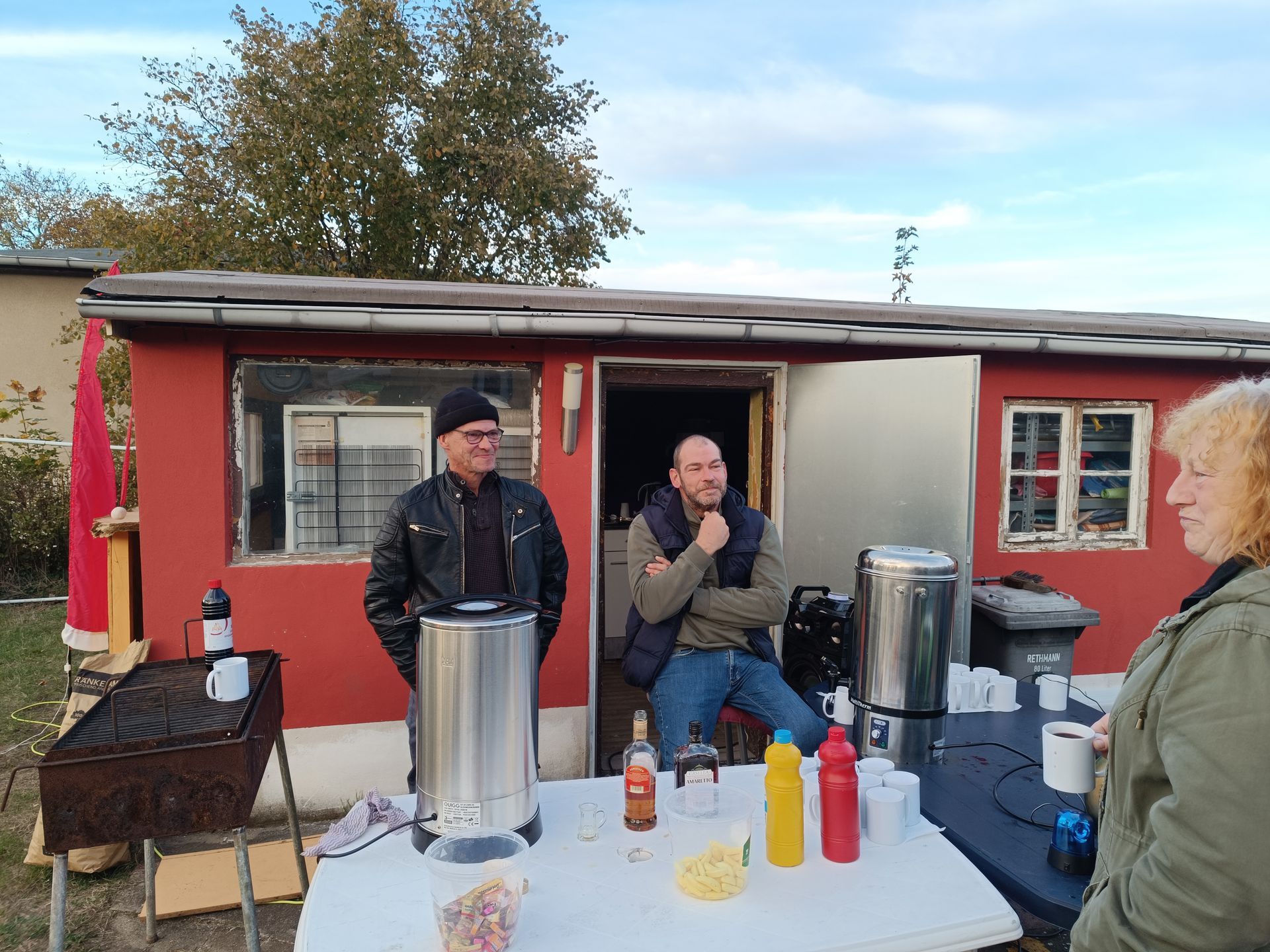 Hier erhalten alle Mitglieder kostenfrei Essen und trinken, denn der Bauschuppen muss leer werden.