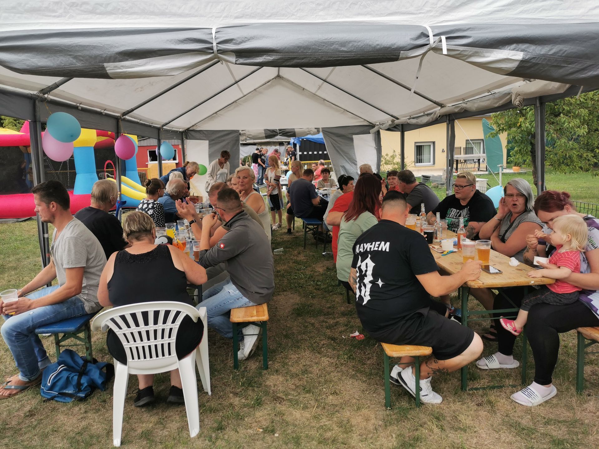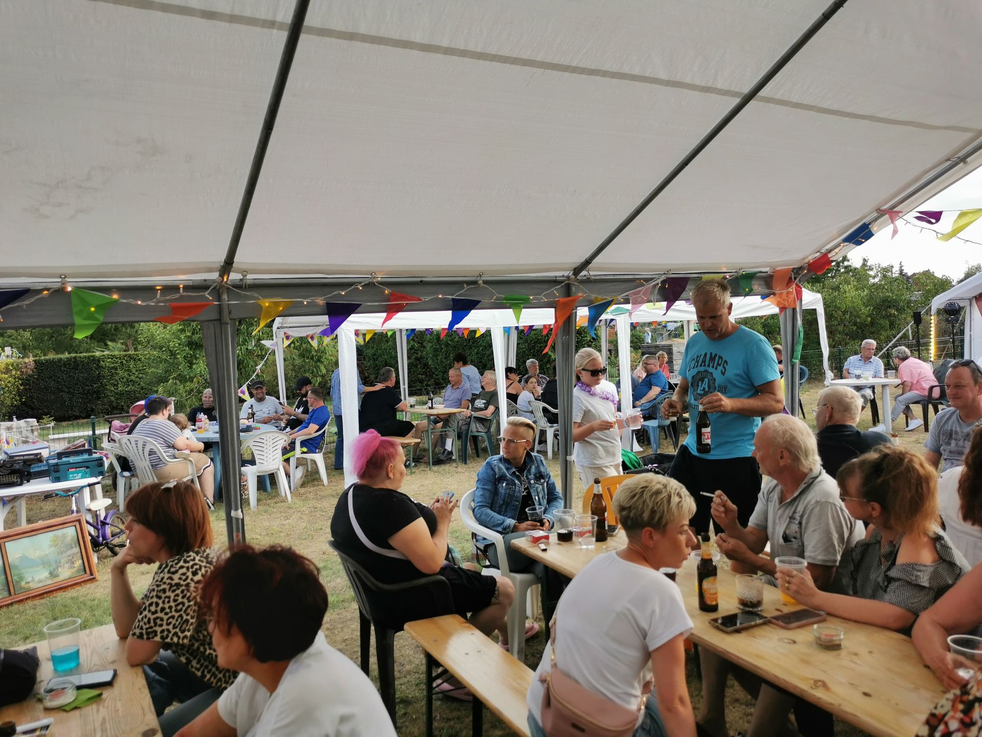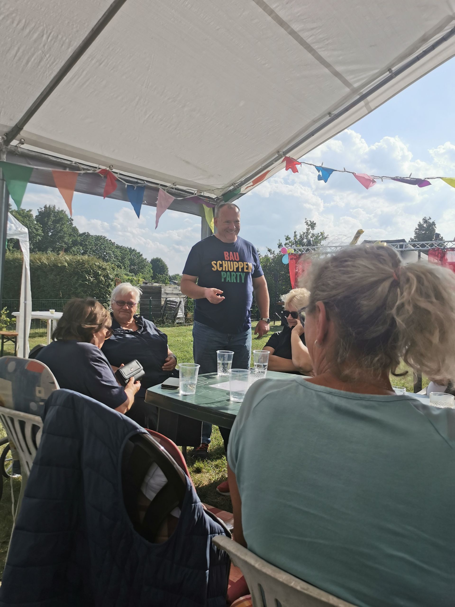 Bauschuppen Party. Sie ist das Herzstück von unserem Vorstand Ronny, sein persönliches Hobby und hat nichts mit der Gartensparte zu tun. Denn die Bauschuppen-Party finanziert sich vollständig selbst, es werden keine Gelder der Sparte verwendet. Das Highlight ist die jährliche Versteigerung bei der jeder mitmachen kann. Von Schätzen aus alten Zeiten, bis hin zu Neuem kann hier alles ersteigert werden. Alles was die Gartenfreunde zuvor gespendet haben. Immer eine Reise wert! Für Essen und Trinken ist ebenfalls gesorgt. Und unsere kleinen Gäste dürfen sich auf der Hüpfeburg vergnügen. Durch DJ Franko kommen auch alle Tanzwütigen auf Ihre Kosten und können auf der Freilandtanzfläche rumzappeln.
