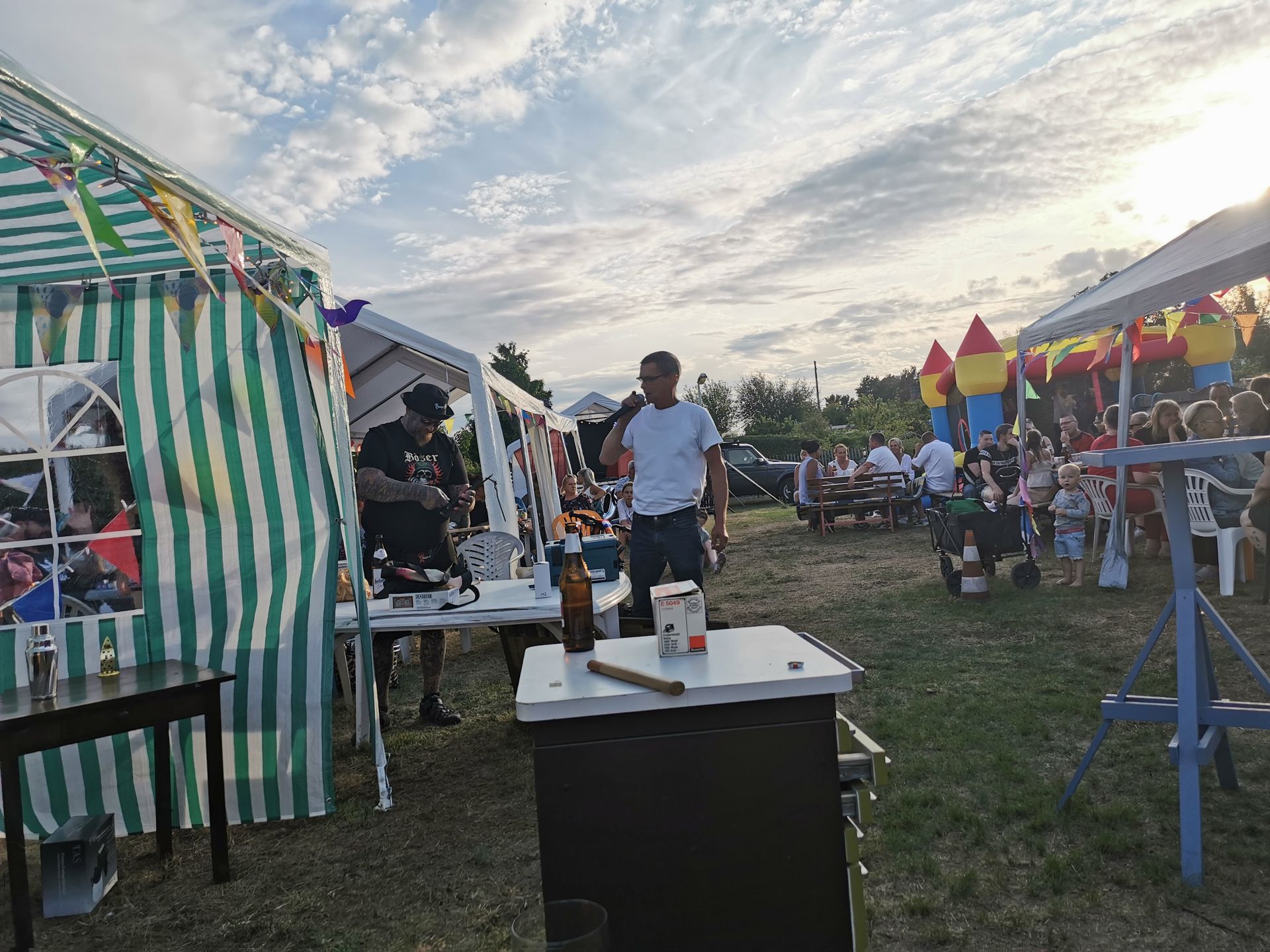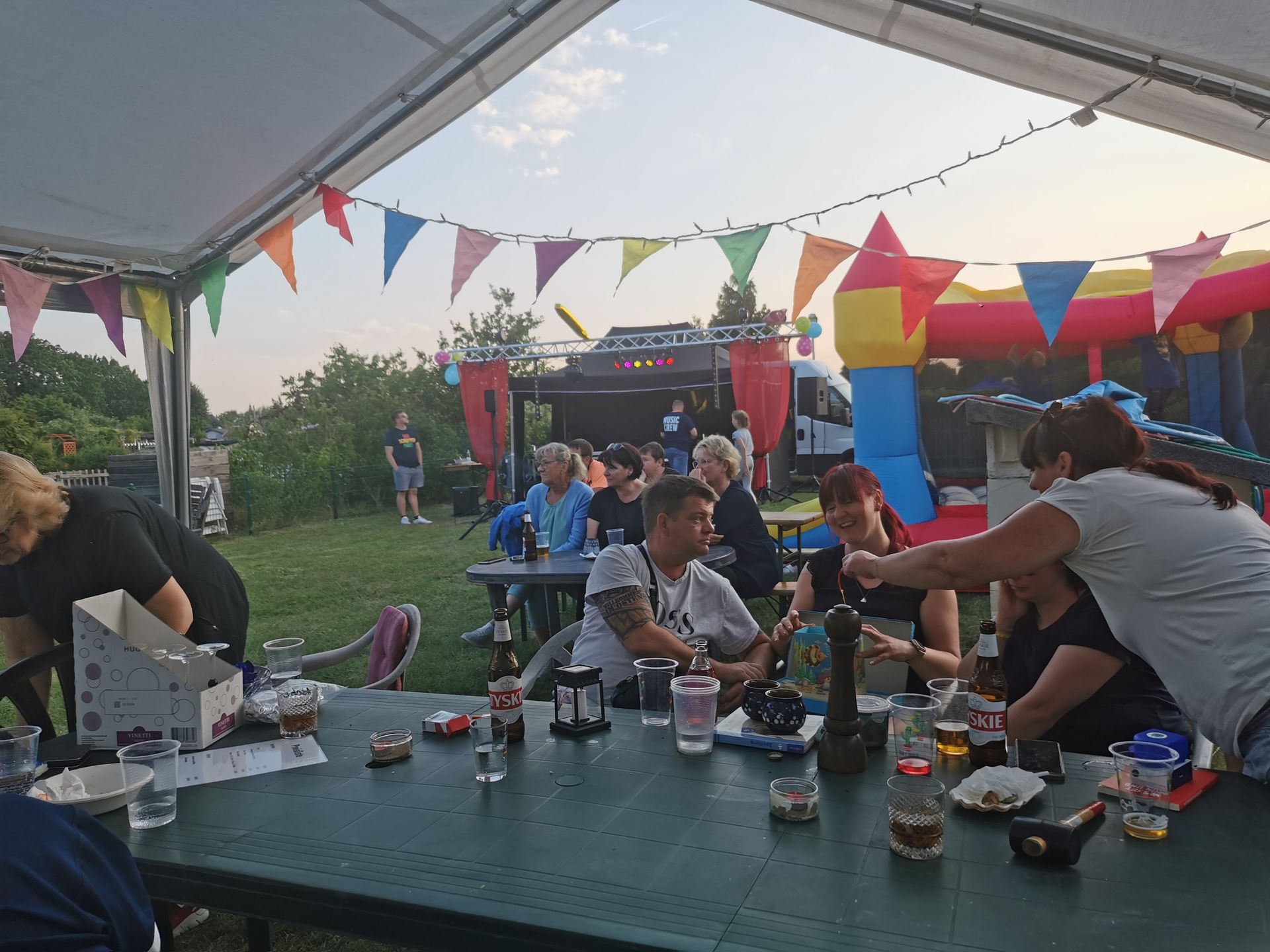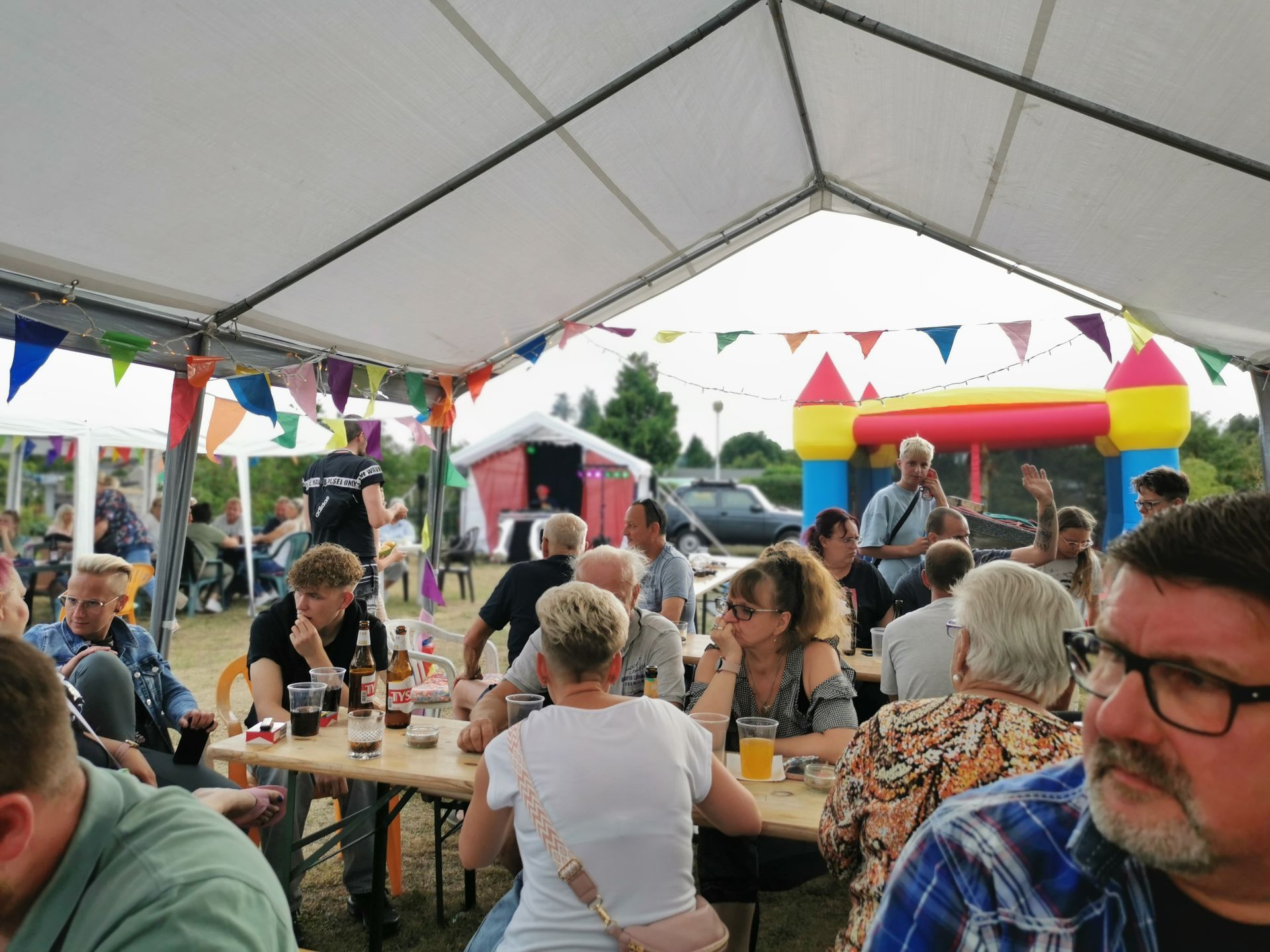 Bauschuppen Party. Sie ist das Herzstück von unserem Vorstand Ronny, sein persönliches Hobby und hat nichts mit der Gartensparte zu tun. Denn die Bauschuppen-Party finanziert sich vollständig selbst, es werden keine Gelder der Sparte verwendet. Das Highlight ist die jährliche Versteigerung bei der jeder mitmachen kann. Von Schätzen aus alten Zeiten, bis hin zu Neuem kann hier alles ersteigert werden. Alles was die Gartenfreunde zuvor gespendet haben. Immer eine Reise wert! Für Essen und Trinken ist ebenfalls gesorgt. Und unsere kleinen Gäste dürfen sich auf der Hüpfeburg vergnügen. Durch DJ Franko kommen auch alle Tanzwütigen auf Ihre Kosten und können auf der Freilandtanzfläche rumzappeln.