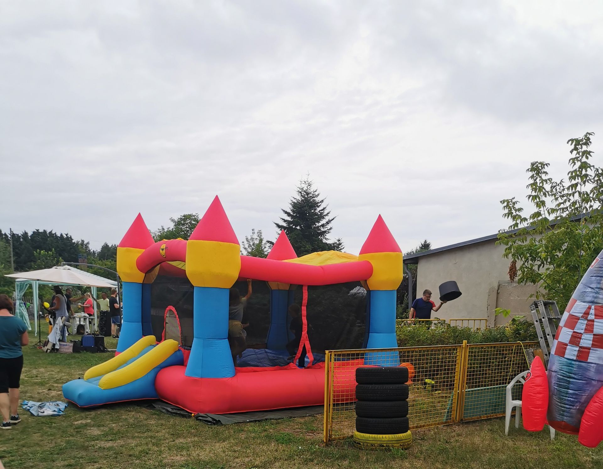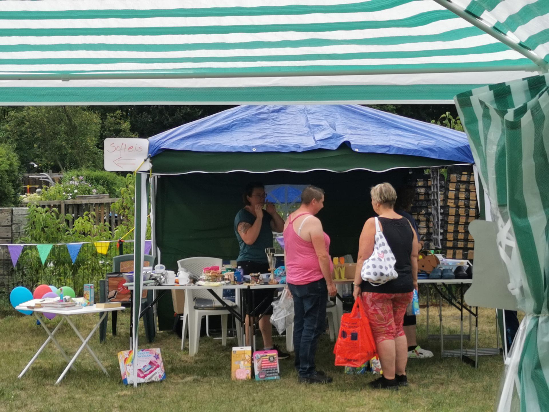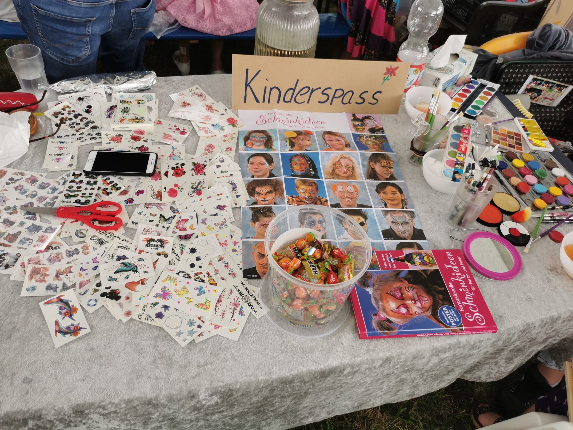 Hüpfburg, Aale/Forellen würfeln, Pflanztauschbörse, Kinderstand (basteln/schminken).